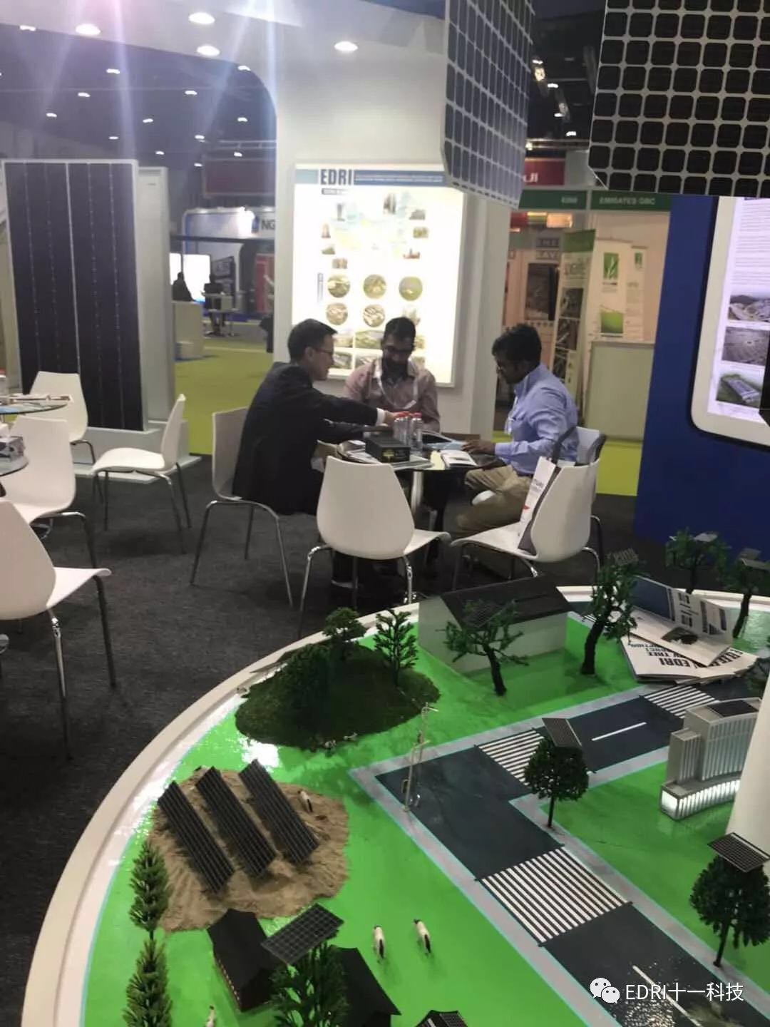 十一科技展臺人流不斷,共接待客人200余批,光伏樹與EPC吸引賓客興趣