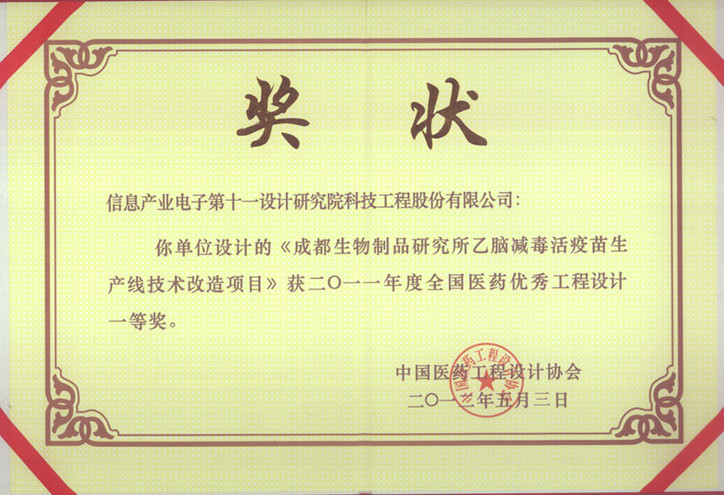 成都生研所乙腦疫苗2011全國醫藥一等獎